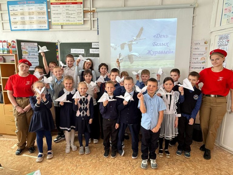 Юнармейцы отряда МОБУ «СОШ № 3 Лесозаводского МО» провели акцию памяти «День белых журавлей»